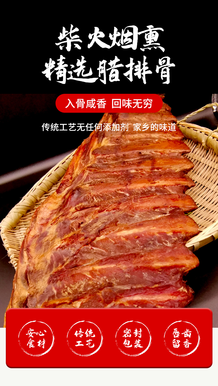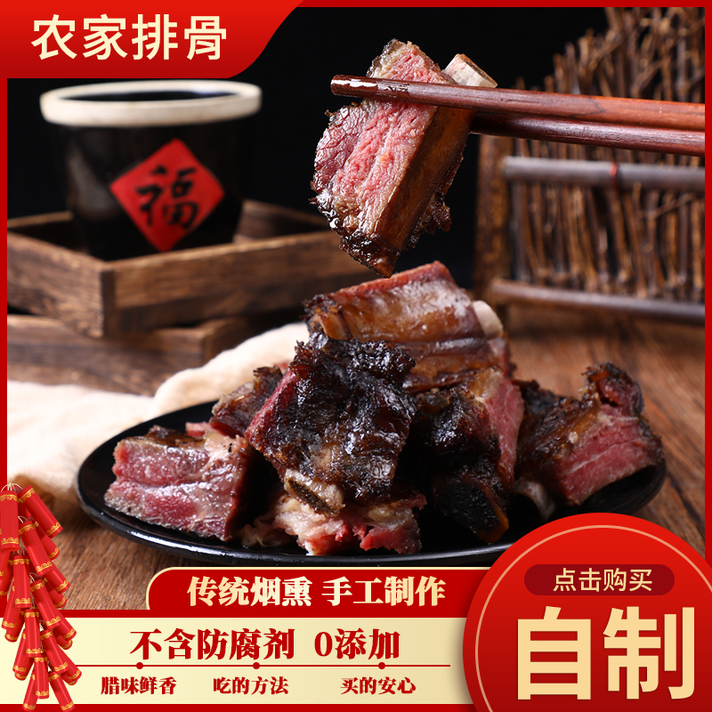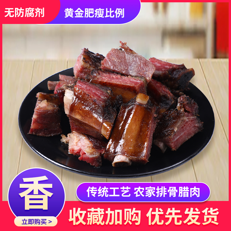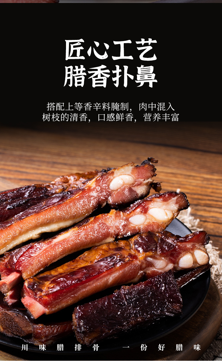 【帮扶】川味腊肉正宗农家散养土猪柏树枝烟熏腊排骨腊味年货1斤/袋
