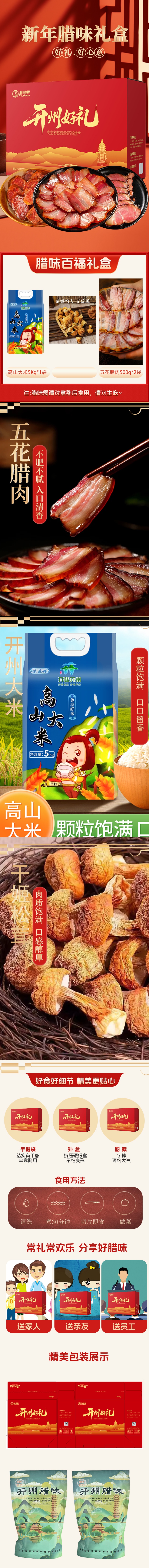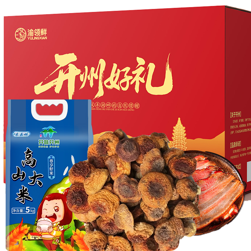 【帮扶】节日腊味礼盒组合开州大米5kg+姬松茸100g×2袋+五花腊肉2斤